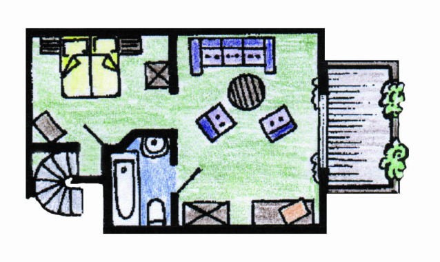 Se yderligere beskrivelse af Familie/Hotel-lejlighederne og Familie-Suiterne længere nede.